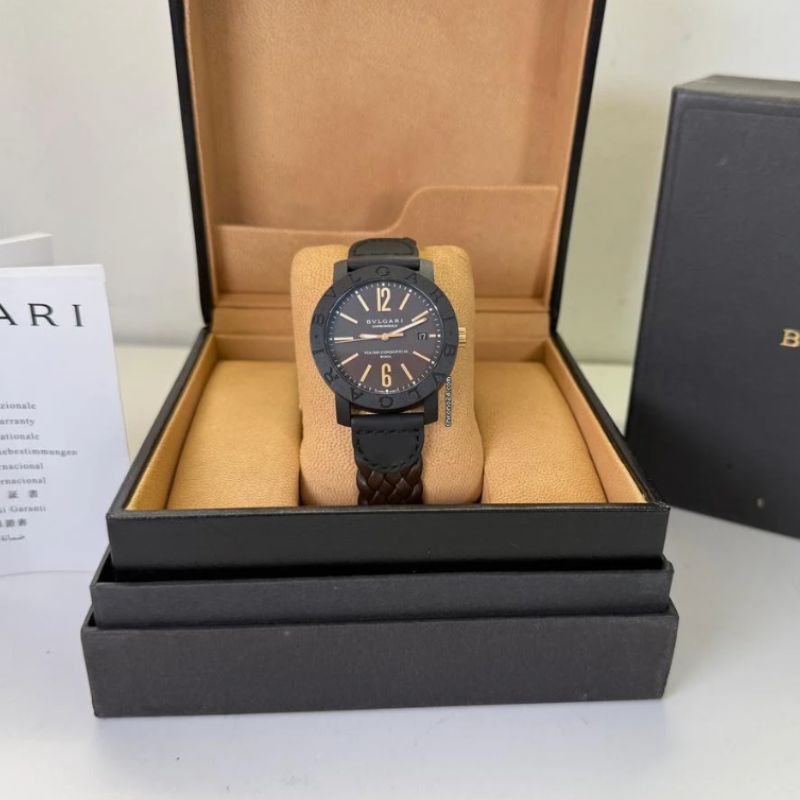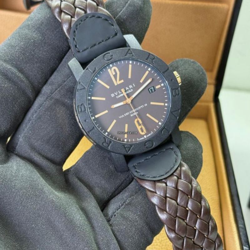 Il Bulgari è un orologio automatico dal design audace e contemporaneo, con cassa in carbonio da 40 mm, quadrante marrone con numeri arabi e vetro zaffiro. Dotato di riserva di carica di 42 ore e movimento automatico con 21 rubini, coniuga tecnologia e raffinatezza.