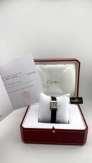 Il quadrante rispetta i codici estetici storici di Cartier. Oltre ai numeri romani, si può notare la firma “Cartier” a ore 12. Un dettaglio per intenditori è spesso nascosto nel numero romano “X” o “VII”, dove la parola “Cartier” è inserita in miniatura come marchio di autenticità.