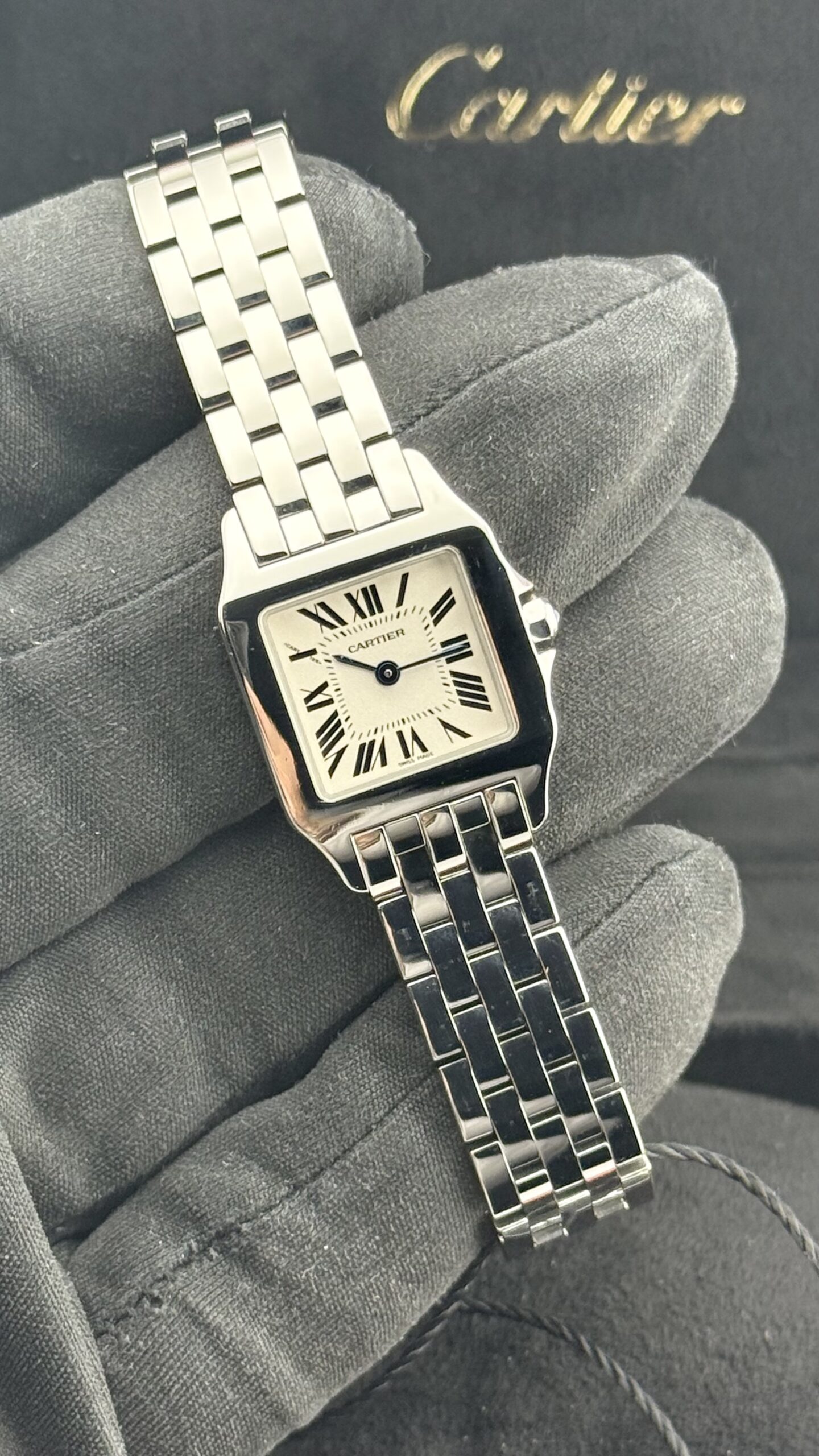 Il Santos Demoiselle reinterpreta uno dei modelli più iconici di Cartier in chiave femminile: proporzioni raffinate, bracciale integrato e quadrante classico con numeri romani e minuteria chemin de fer. Leggero, confortevole e incredibilmente versatile, è perfetto come orologio quotidiano che passa con naturalezza dal lavoro alla sera.