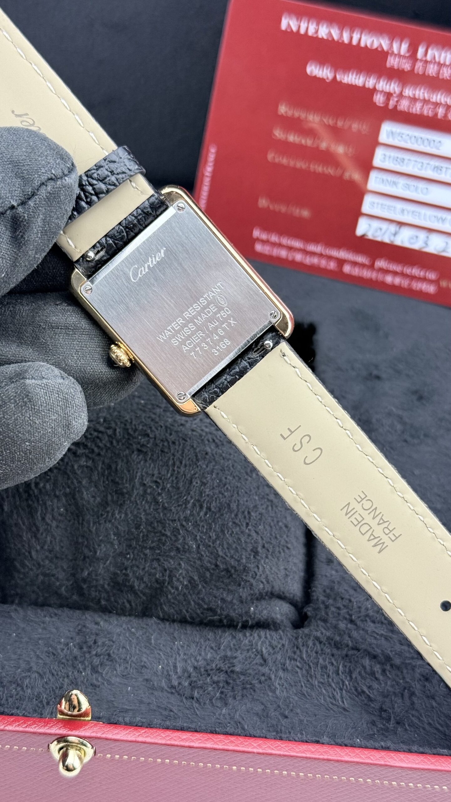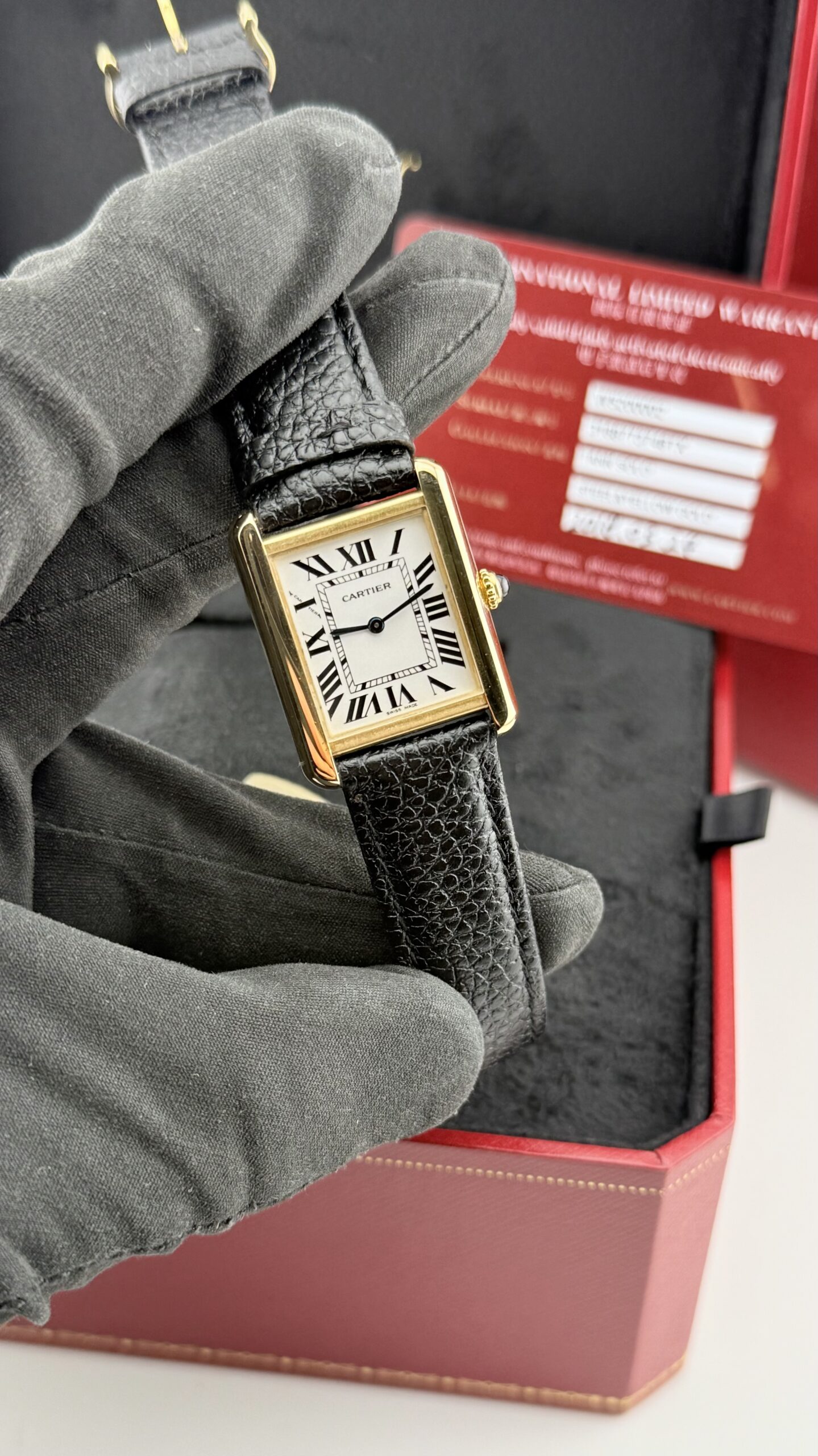 Eleganza senza tempo in formato “small”. Il Cartier Tank Solo W5200002 unisce la cassa rettangolare in oro giallo 18K al classico quadrante argenté con numeri romani e lancette azzurrate: un’icona discreta, raffinata e facile da indossare ogni giorno. Movimento al quarzo per massima praticità e vetro zaffiro antigraffio. Perfetto come orologio da donna o unisex per polsi più sottili.