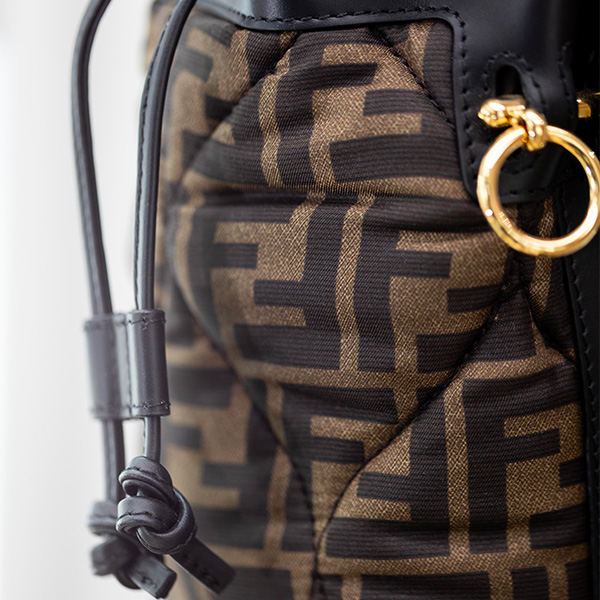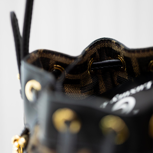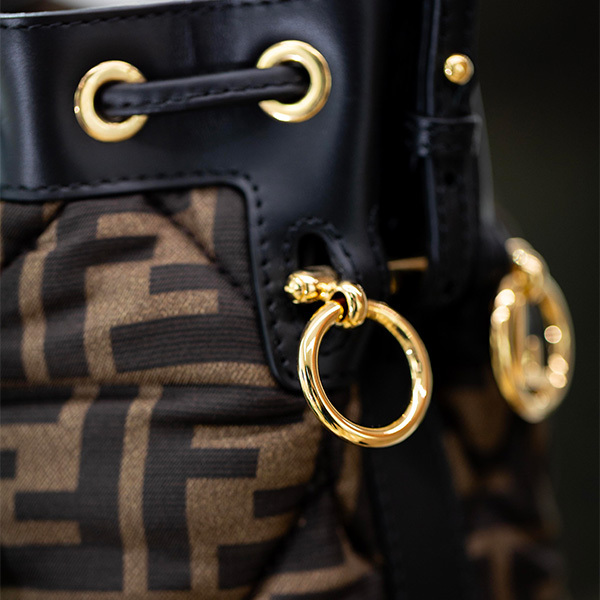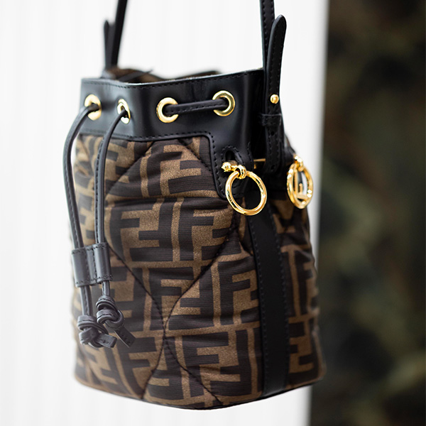 Il MonTrésor reinterpreta il classico secchiello con la leggerezza del micro formato e l'inconfondibile tocco Fendi: logo a rilievo, dettagli dorati, pelle liscia o stampata.