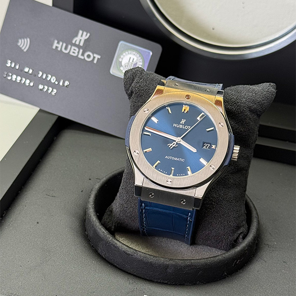 L’Hublot Classic Fusion Blue si presenta in ottime condizioni, con segni d’uso minimi e appena percettibili. Questo elegante segnatempo automatico monta il calibro HUB1112 con una riserva di carica di 42 ore.