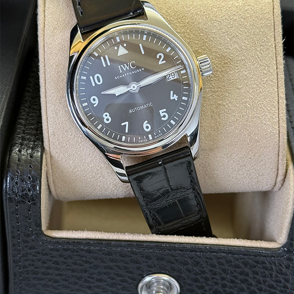 Pensato per i polsi più sottili ma senza rinunciare alla solidità del design aviator, l’IWC Pilot’s Watch Automatic 36 è un orologio elegante e funzionale, perfetto sia per uomo che per un pubblico unisex. Prodotto nel 2019, ospita il calibro automatico 35111 con 42 ore di riserva di carica e 25 rubini, a garanzia di precisione e durata.