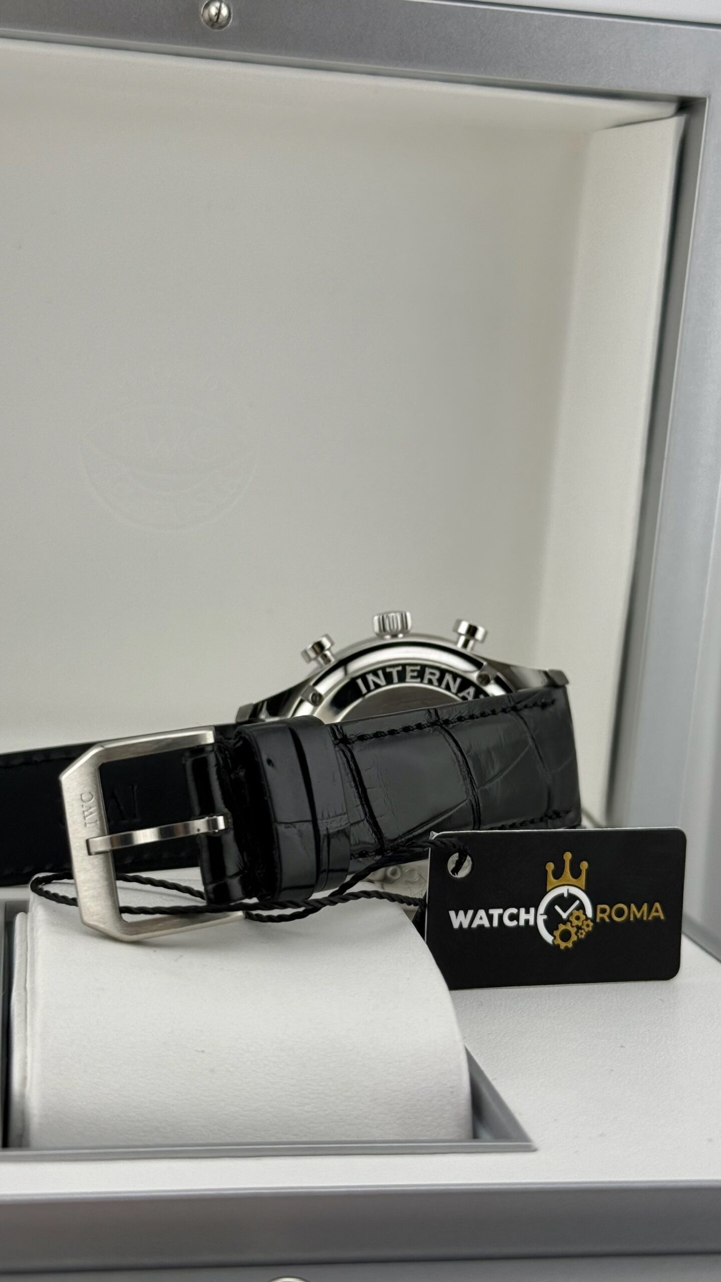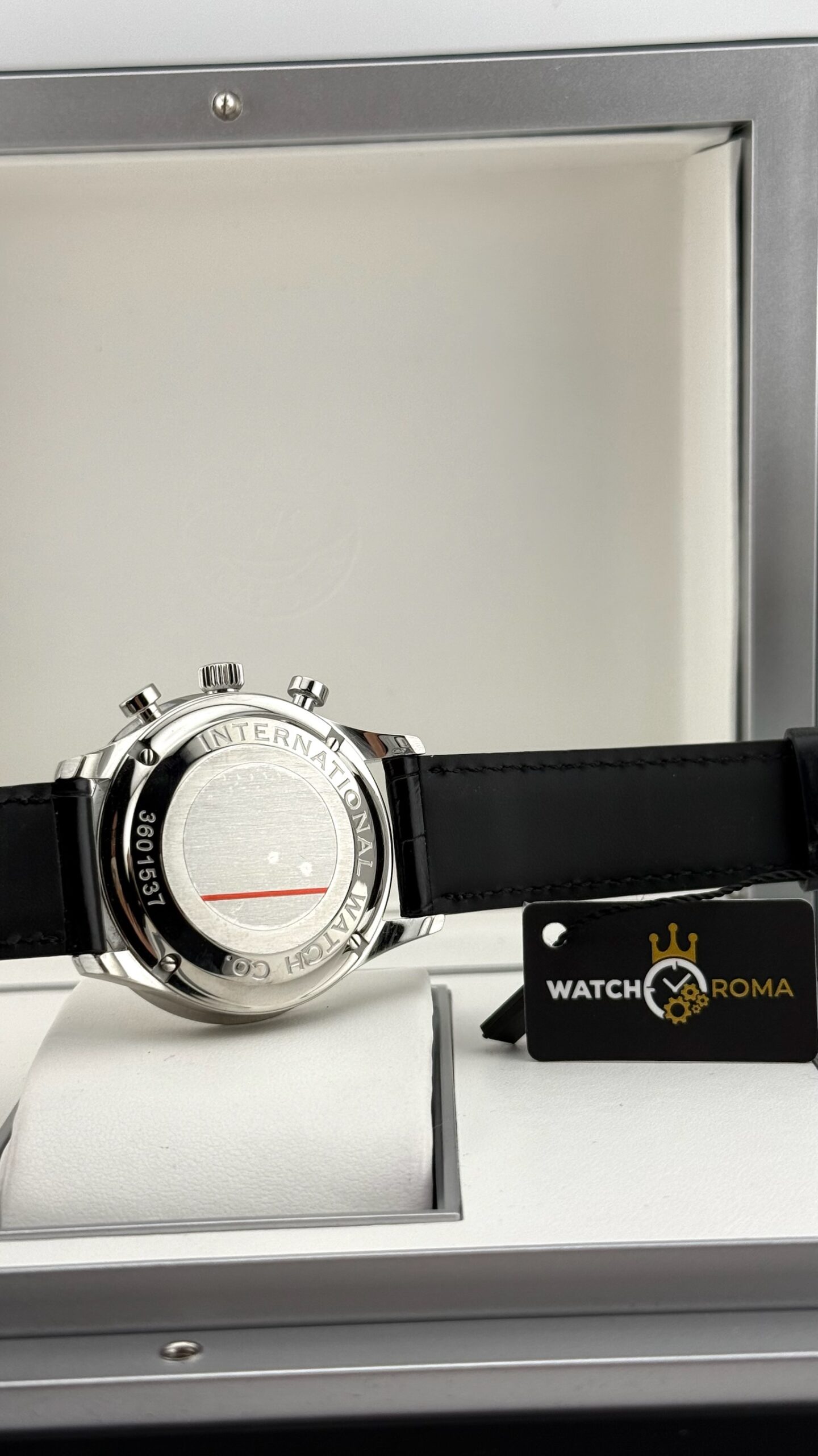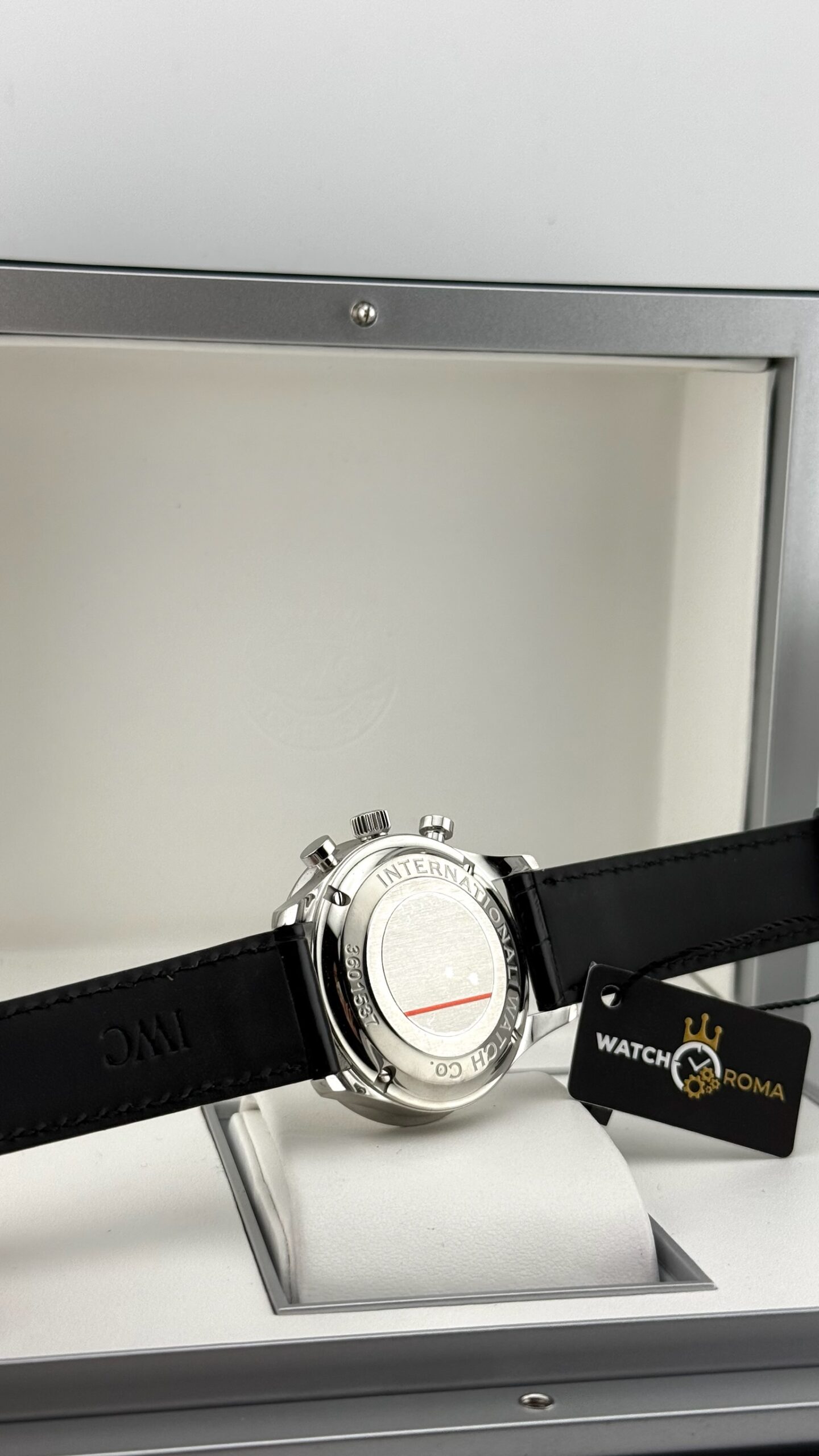 Movimento: Batte all’interno il Calibro IWC 79350, un movimento cronografico a carica automatica basato sulla robusta architettura Valjoux 7750, ma profondamente modificato e rifinito da IWC per soddisfare i propri standard di precisione. Offre una riserva di carica di circa 44 ore.