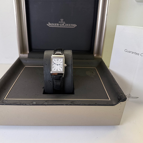 Il Jaeger-LeCoultre Reverso Duetto Classique è l’emblema dell’orologeria femminile raffinata e versatile. Con la sua celebre cassa reversibile in acciaio (33,2 x 20,7 mm), racchiude due quadranti distinti: uno argento con numeri arabi per il giorno e uno più elegante per la sera.