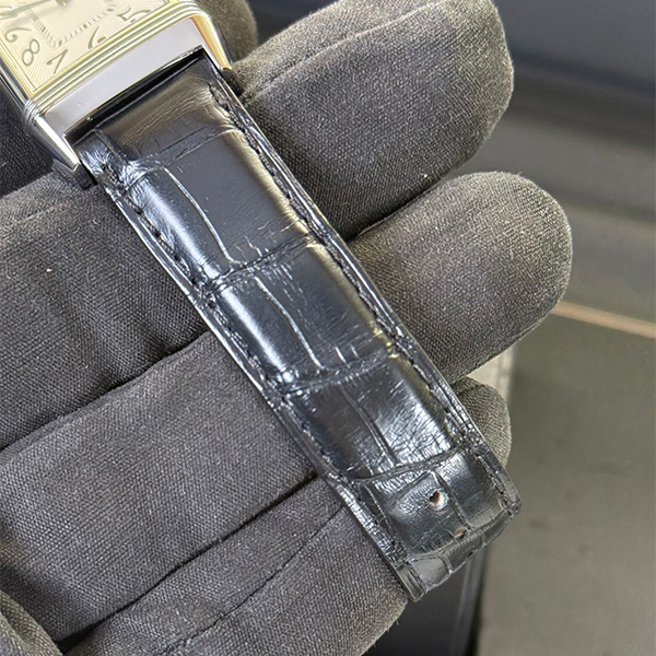 Animato da movimento manuale con riserva di carica di 38 ore, è dotato di vetro zaffiro, impermeabilità a 3 ATM e cinturino in pelle di coccodrillo con chiusura déployante.