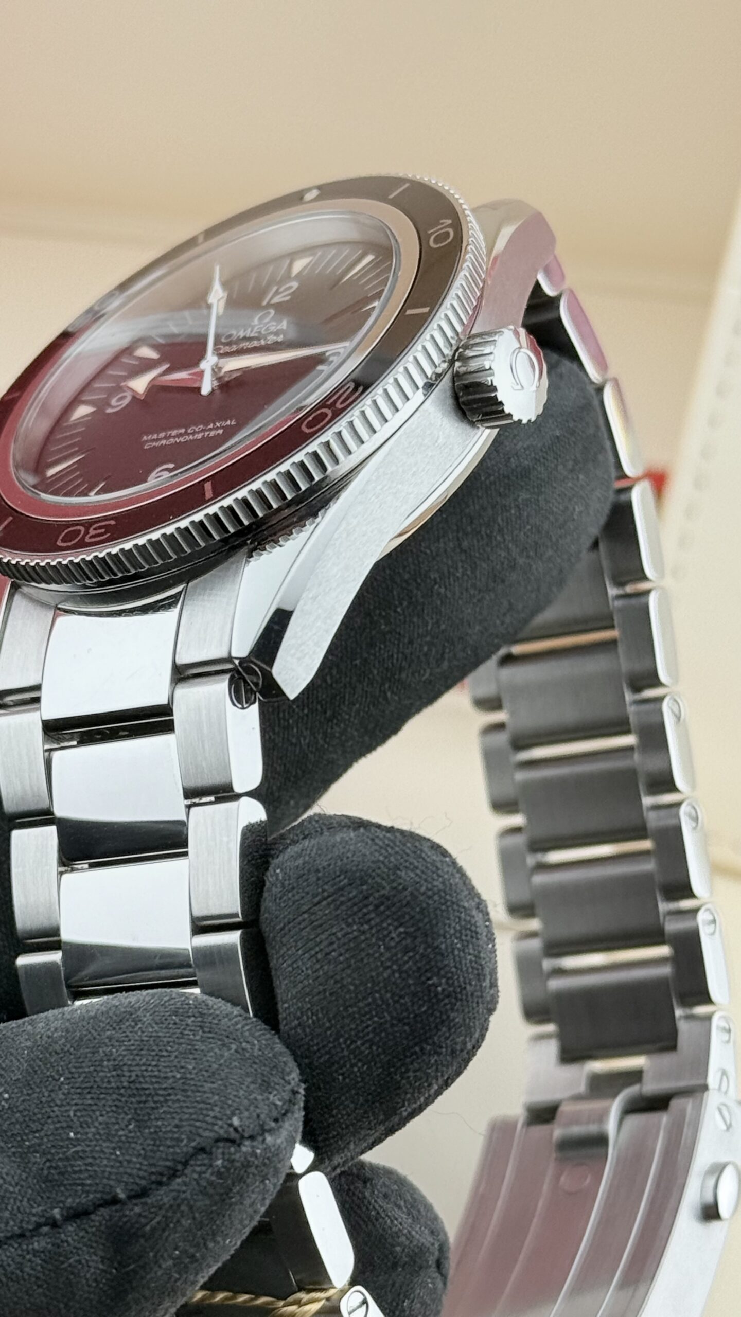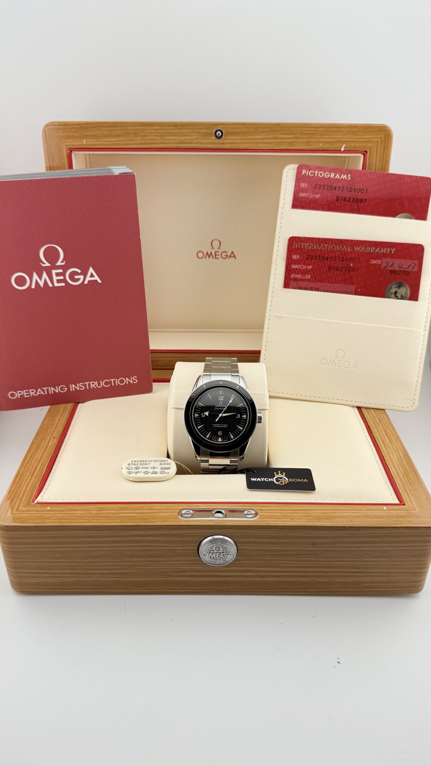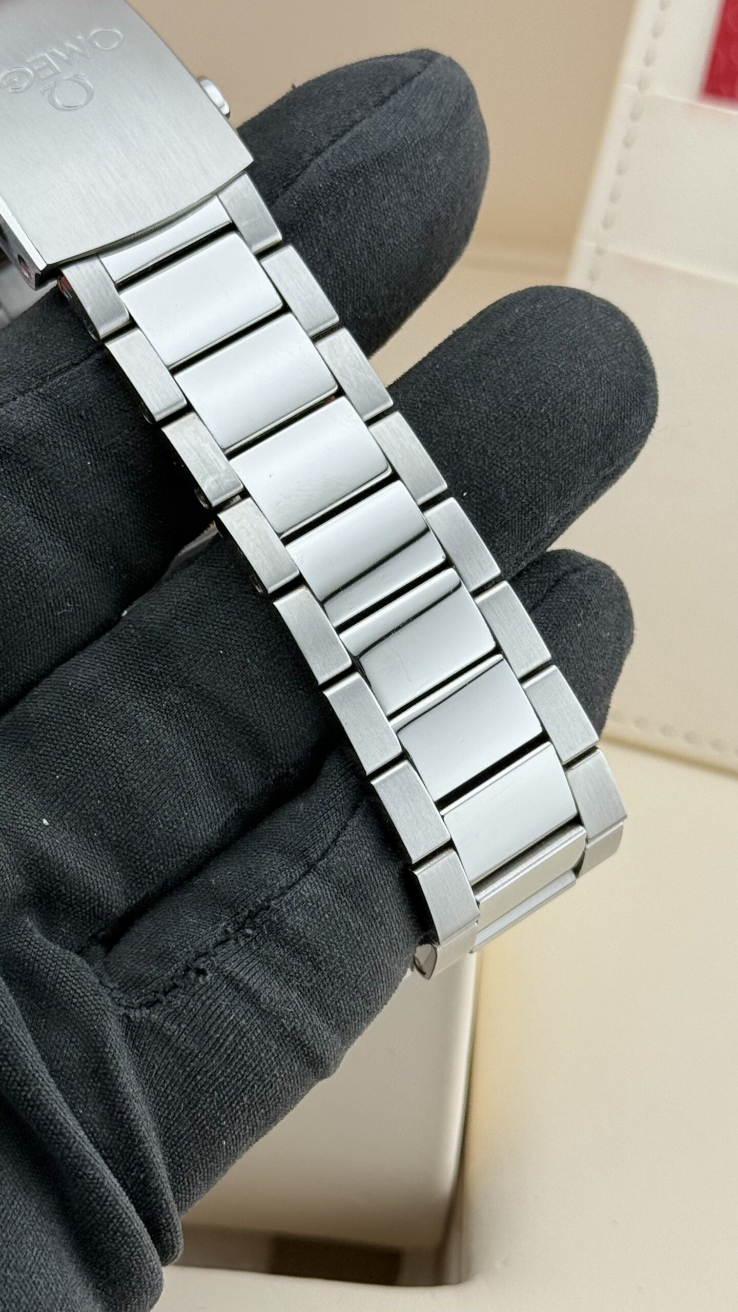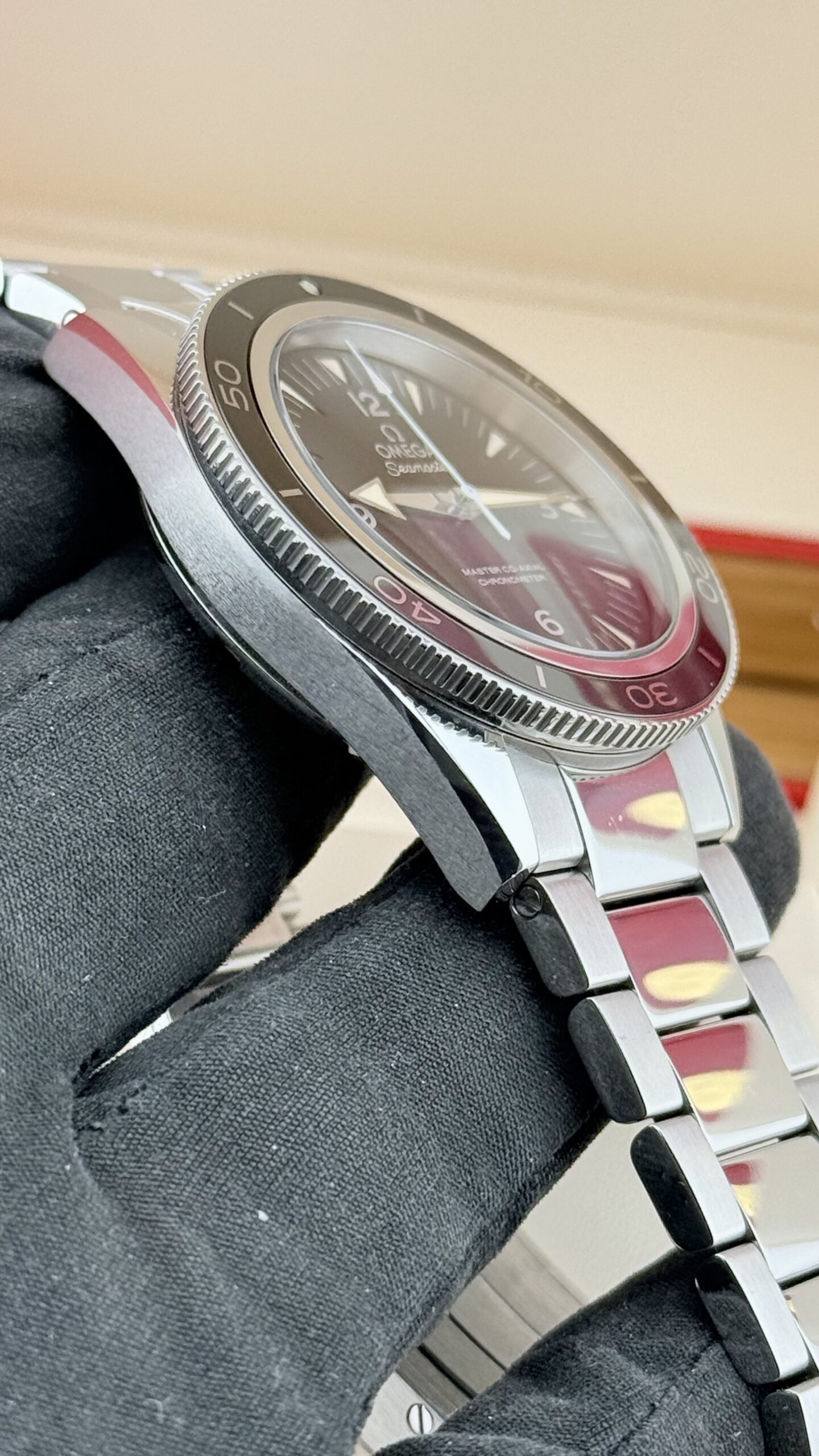 Iconico diver sportivo-elegante da 41 mm in acciaio 316L. Ghiera girevole unidirezionale in ceramica nera con scala subacquea, vetro zaffiro bombato con trattamento antiriflesso, quadrante nero con scala a onde e indici luminosi. Movimento automatico Co‑Axial Master Chronometer (precisione e resistenza magnetica), corona a vite e valvola per l’elio. Impermeabilità 300 m. Design versatile, adatto sia alle immersioni che all’uso quotidiano.