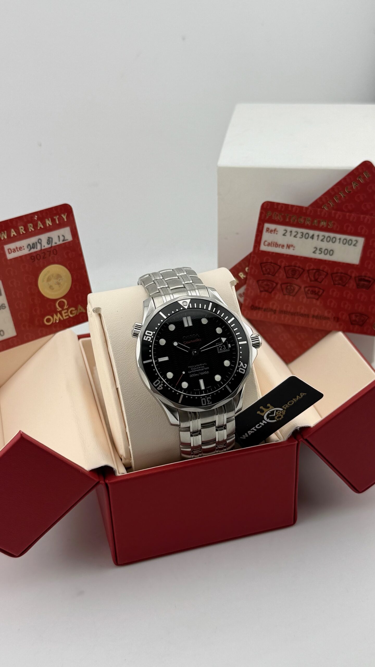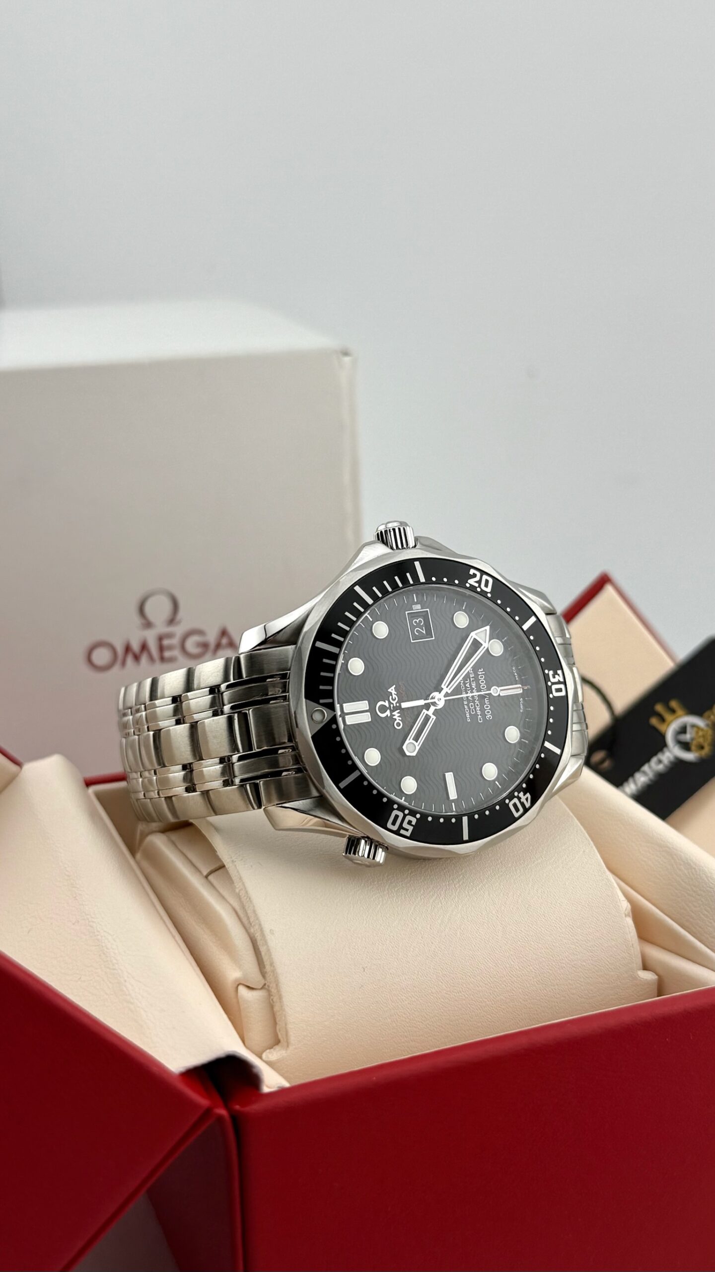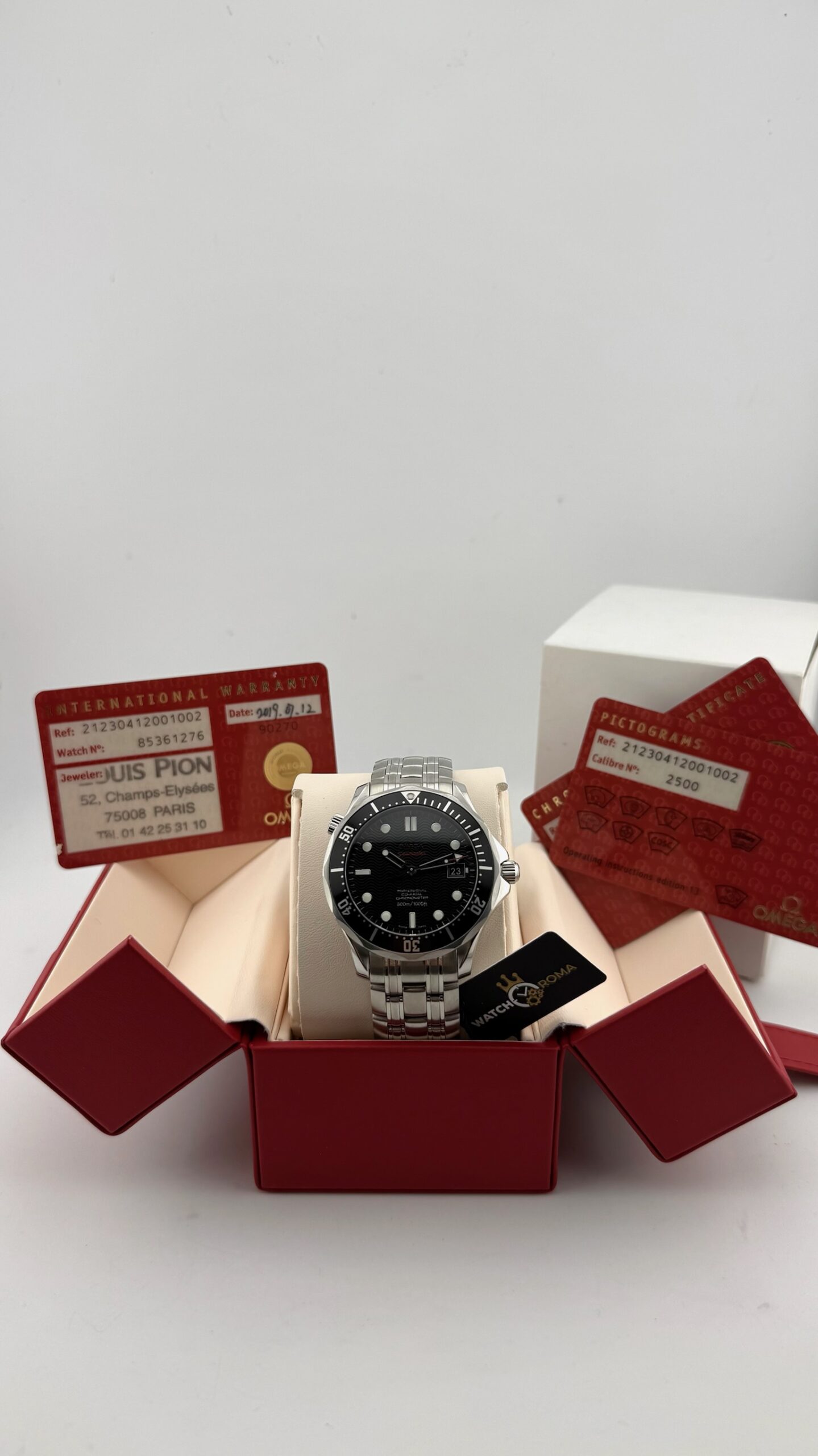 L’Omega Seamaster Diver 300M, referenza 212.30.41.20.01.002, è uno dei pilastri della produzione moderna della maison di Bienne, celebre per il suo legame indissolubile con il mondo del cinema e dell’esplorazione subacquea. Questo modello specifico rappresenta l’evoluzione tecnica della serie introdotta negli anni ’90, mantenendo il design iconico “Bond” ma aggiornandolo con un cuore meccanico di alta precisione e finiture più resistenti. L’esemplare in foto è stato venduto a Parigi, sugli Champs-Élysées, nel gennaio del 2011, collocandosi perfettamente nella fase di massima maturità di questa serie.