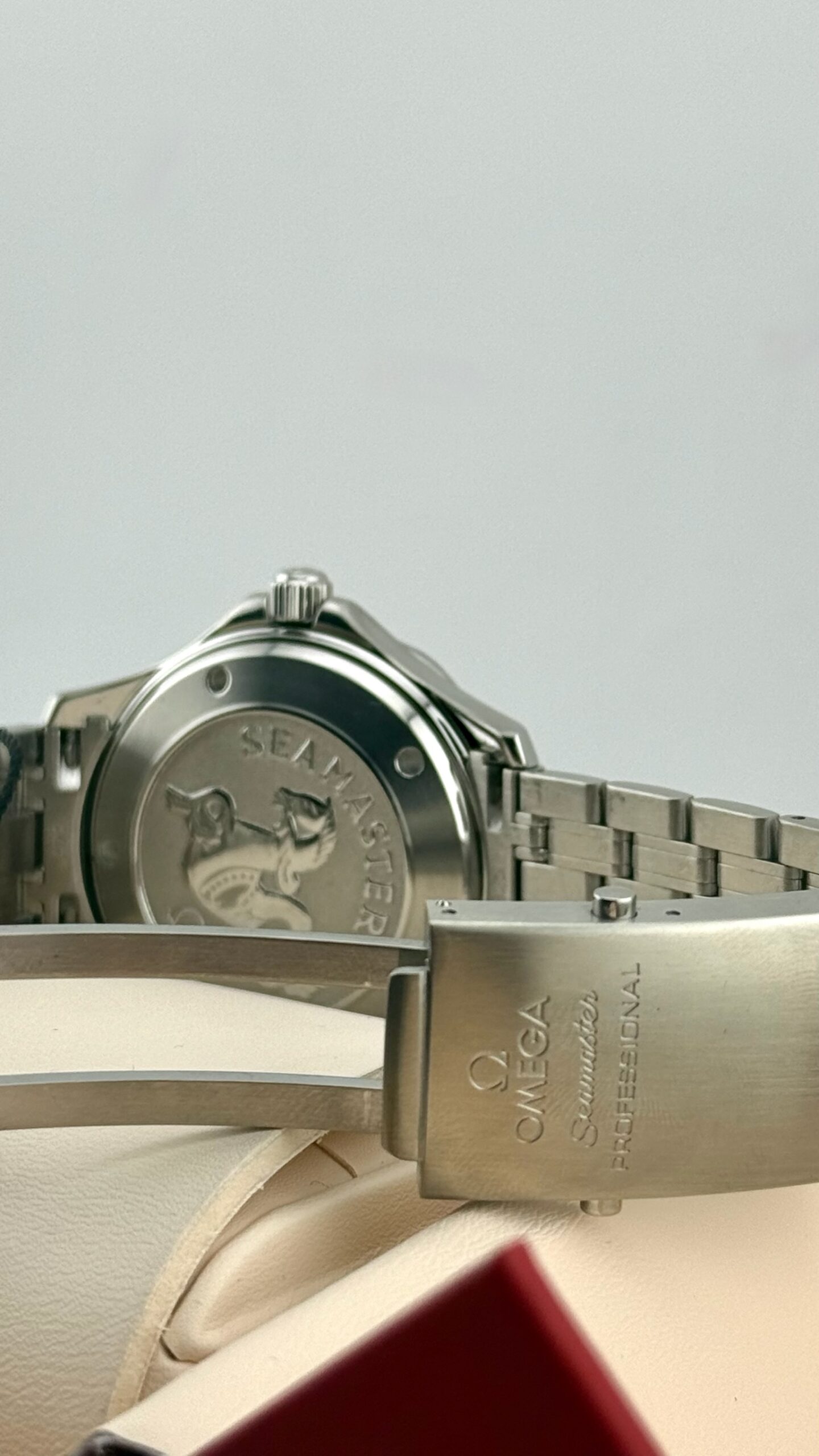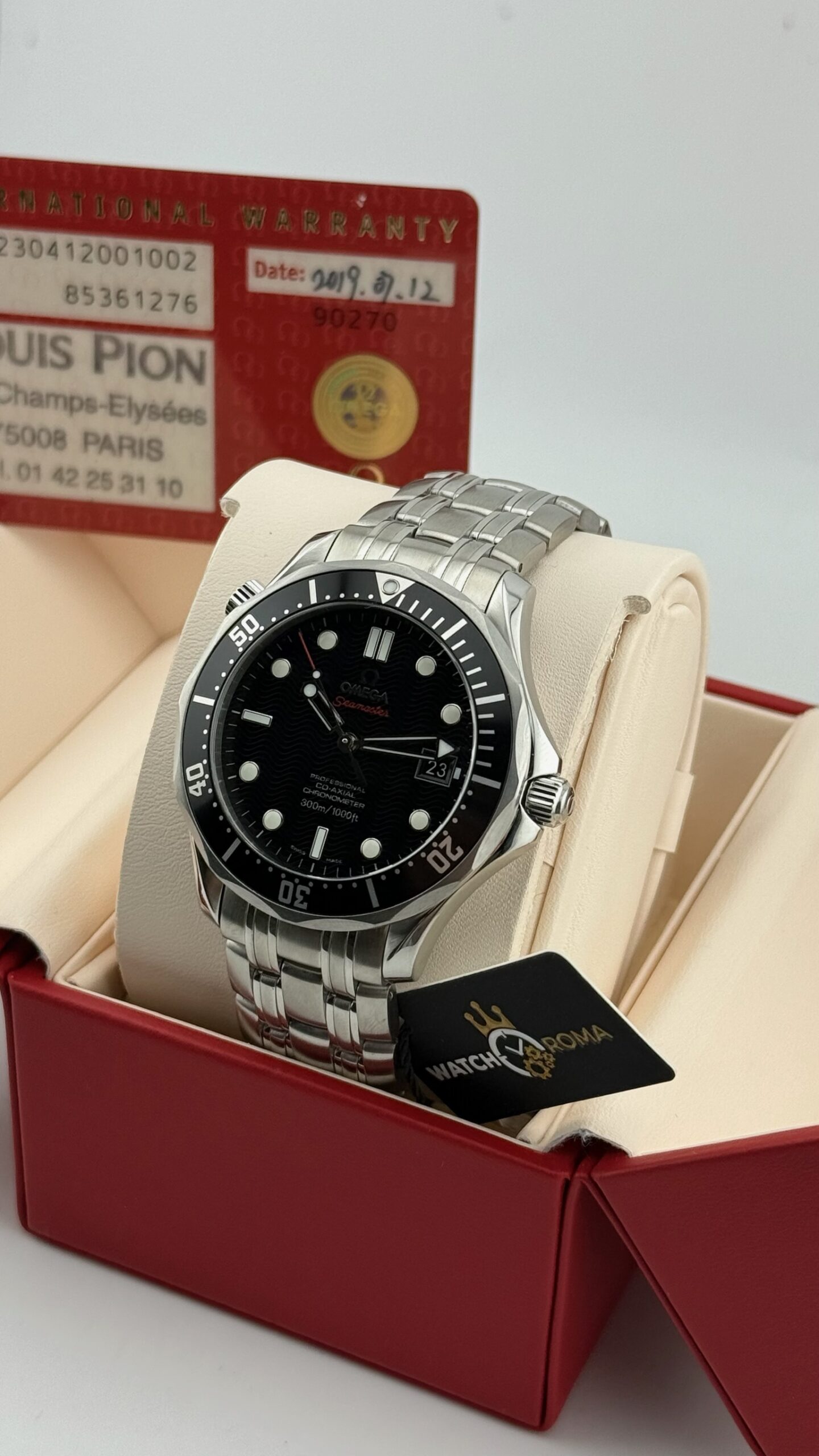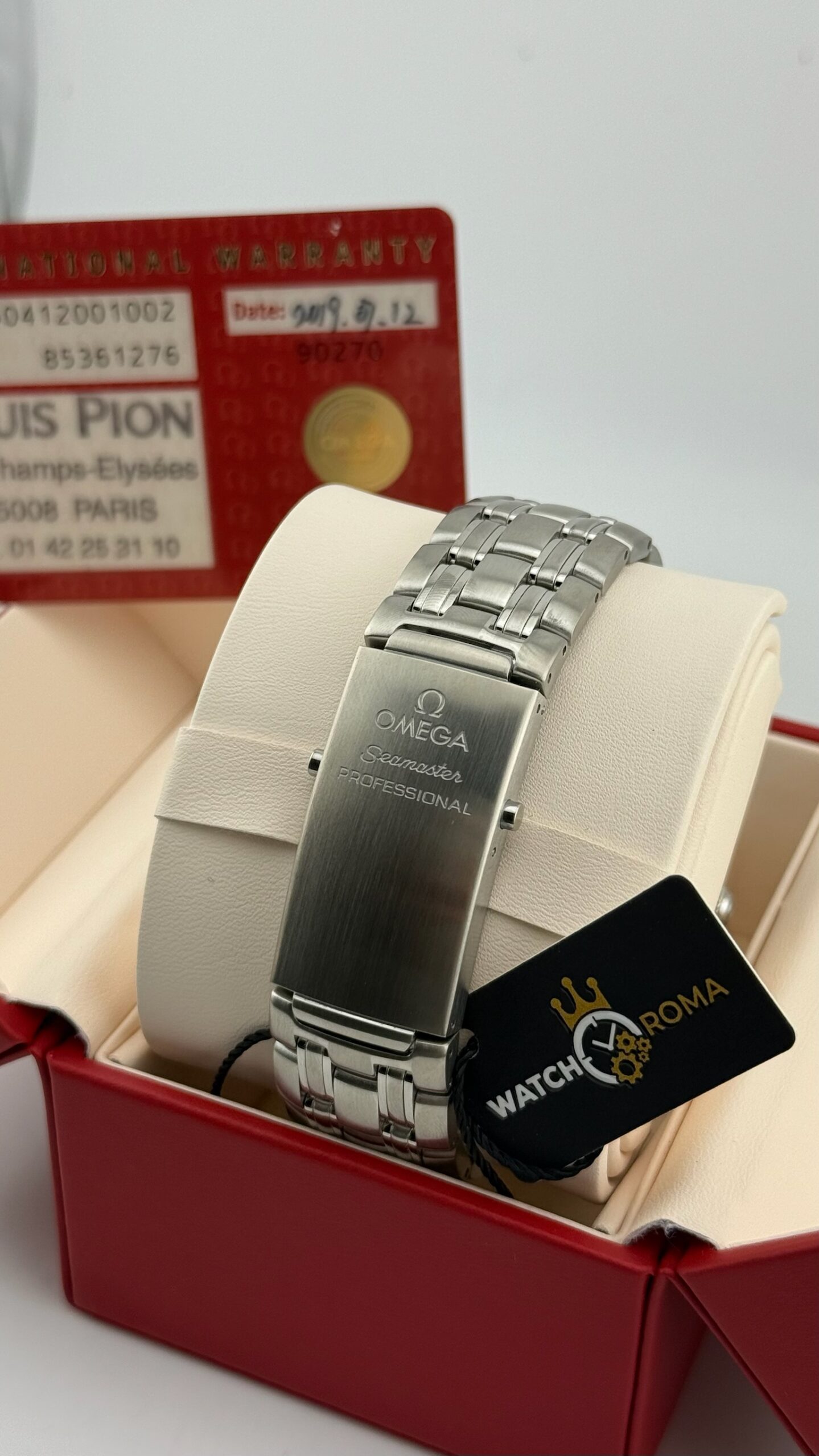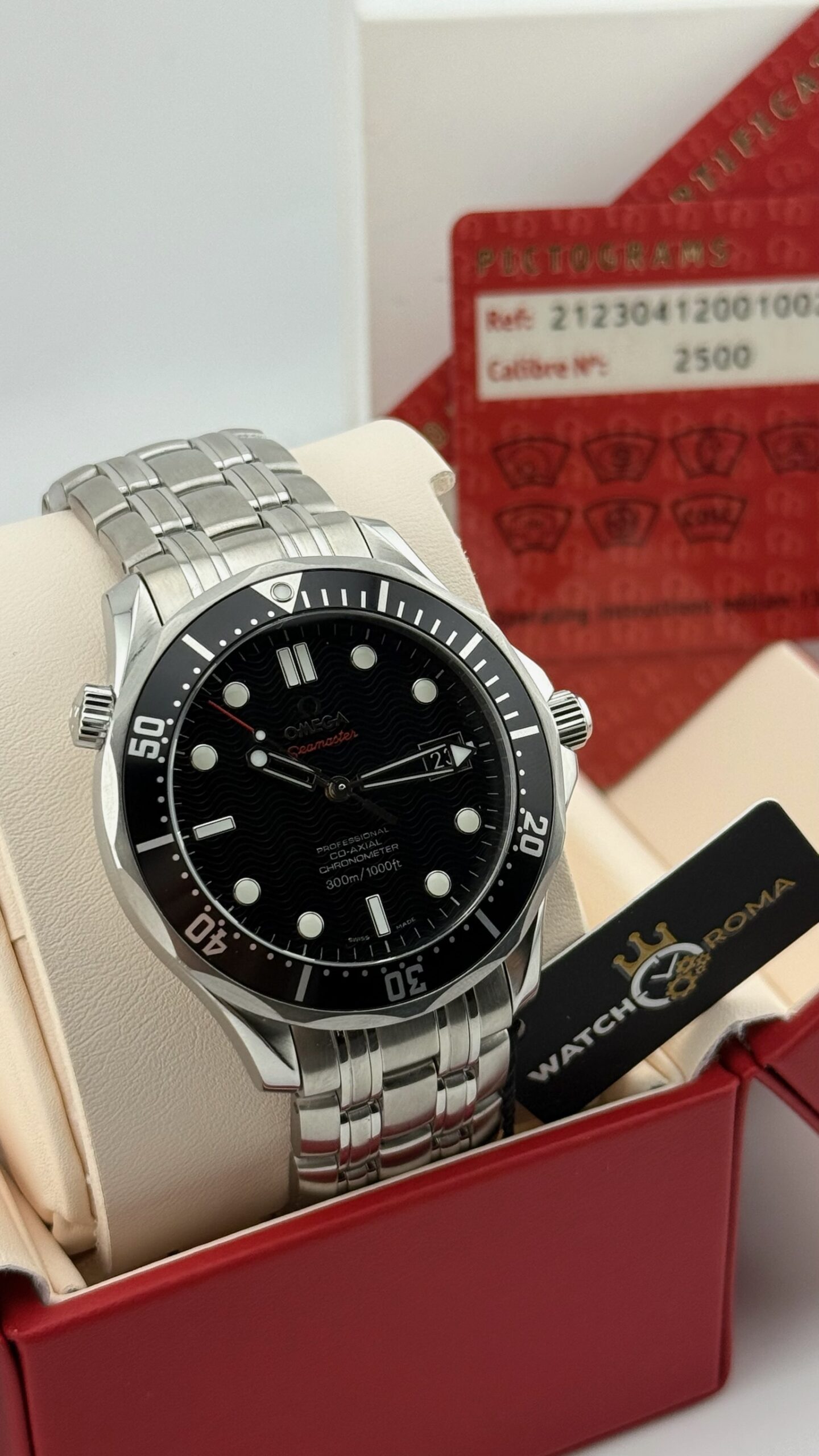 L’Omega Seamaster Diver 300M, referenza 212.30.41.20.01.002, è uno dei pilastri della produzione moderna della maison di Bienne, celebre per il suo legame indissolubile con il mondo del cinema e dell’esplorazione subacquea. Questo modello specifico rappresenta l’evoluzione tecnica della serie introdotta negli anni ’90, mantenendo il design iconico “Bond” ma aggiornandolo con un cuore meccanico di alta precisione e finiture più resistenti. L’esemplare in foto è stato venduto a Parigi, sugli Champs-Élysées, nel gennaio del 2011, collocandosi perfettamente nella fase di massima maturità di questa serie.