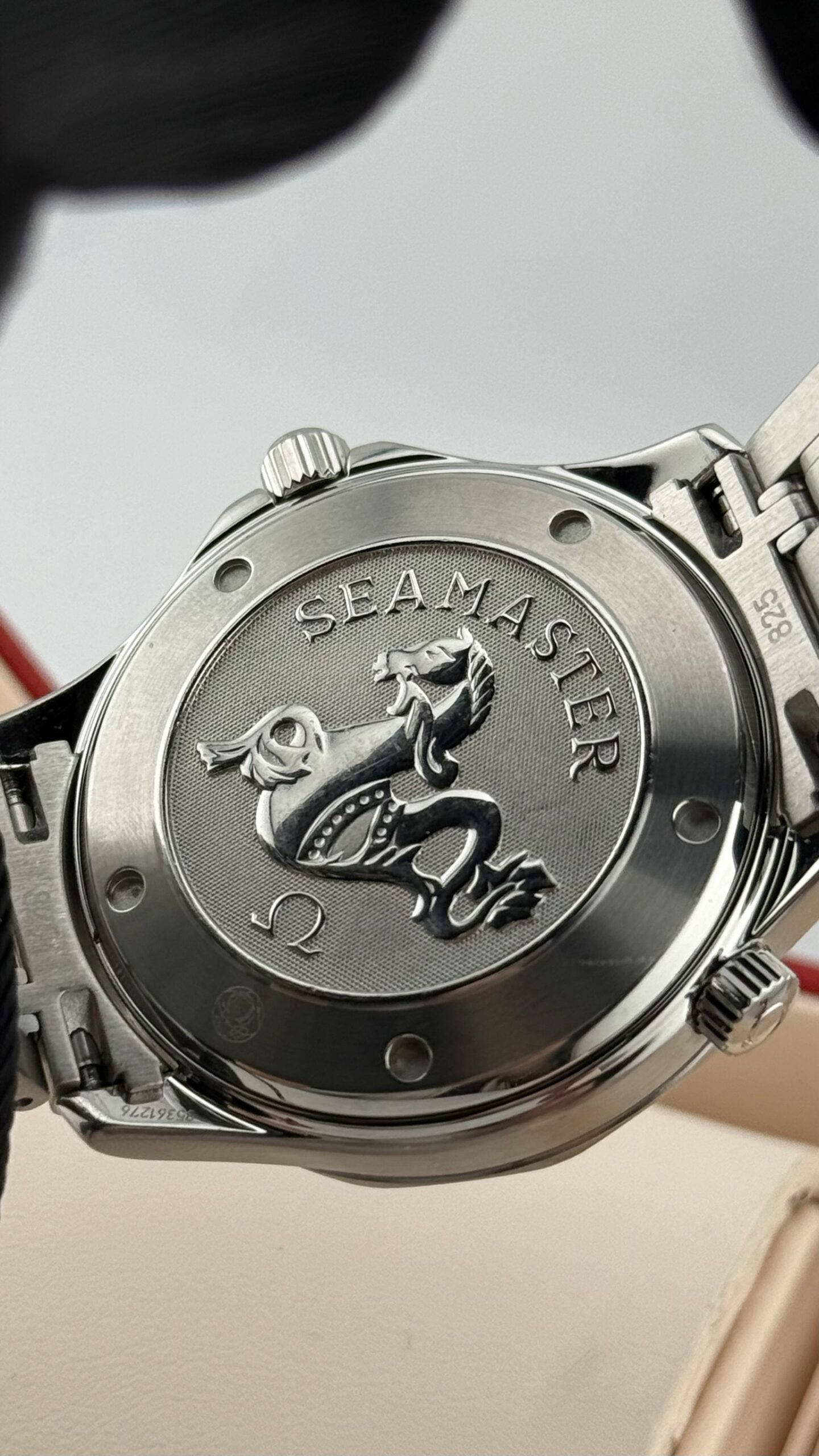 Il cuore tecnologico di questo Seamaster è il calibro Omega 2500, un movimento meccanico a carica automatica che ha segnato un’epoca: è stato infatti il primo calibro di grande serie a implementare lo scappamento Co-Axial, tecnologia che riduce gli attriti interni e garantisce una precisione cronometrica superiore nel lungo periodo. Il movimento è certificato ufficialmente come cronometro dal COSC. La protezione del quadrante è affidata a un cristallo zaffiro bombato con trattamento antiriflesso su entrambi i lati, che quasi scompare alla vista, permettendo di ammirare i riflessi del quadrante “wave”.