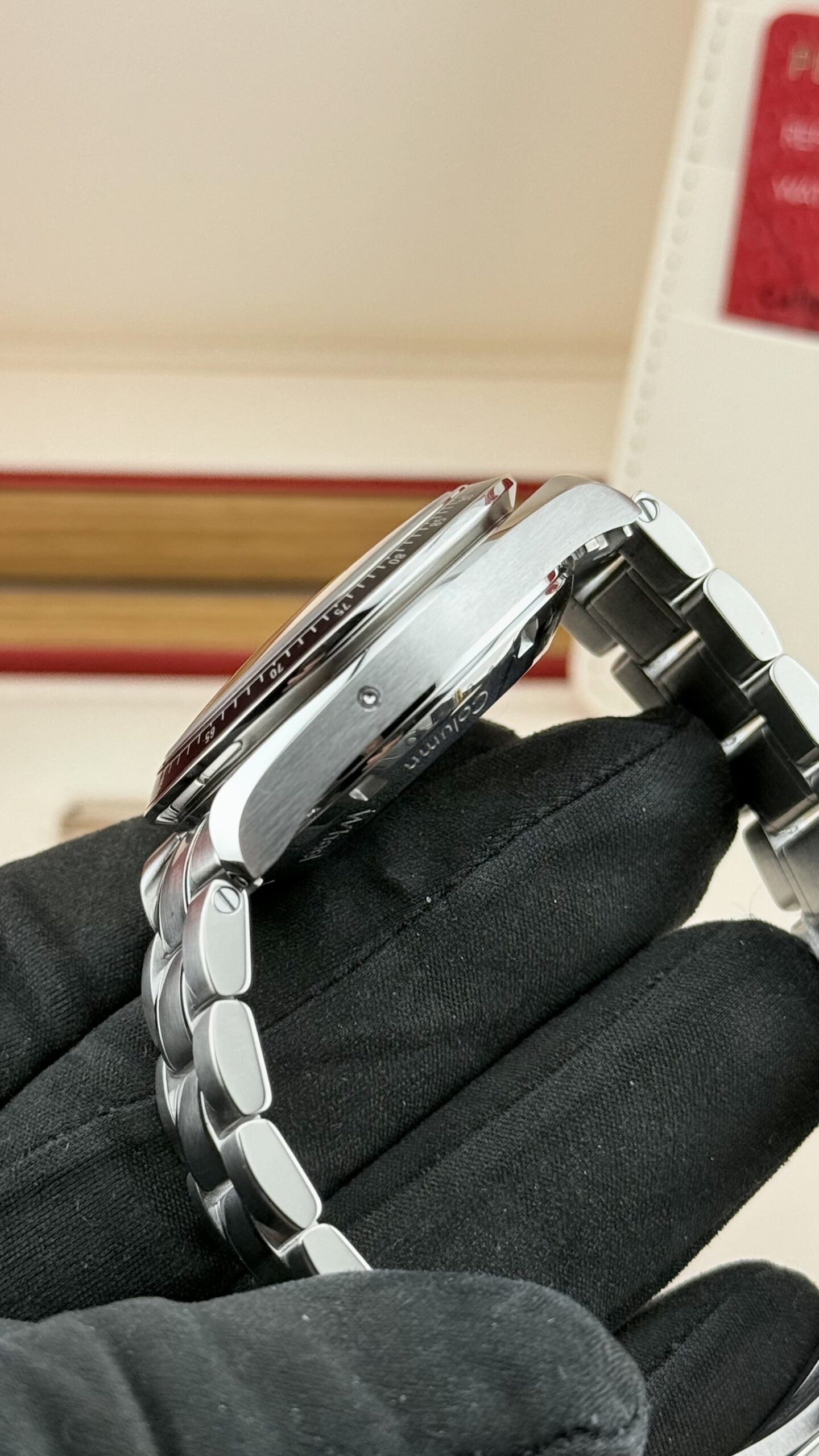 Quadrante: nero con minuteria “racing”, indici applicati con Super‑LumiNova