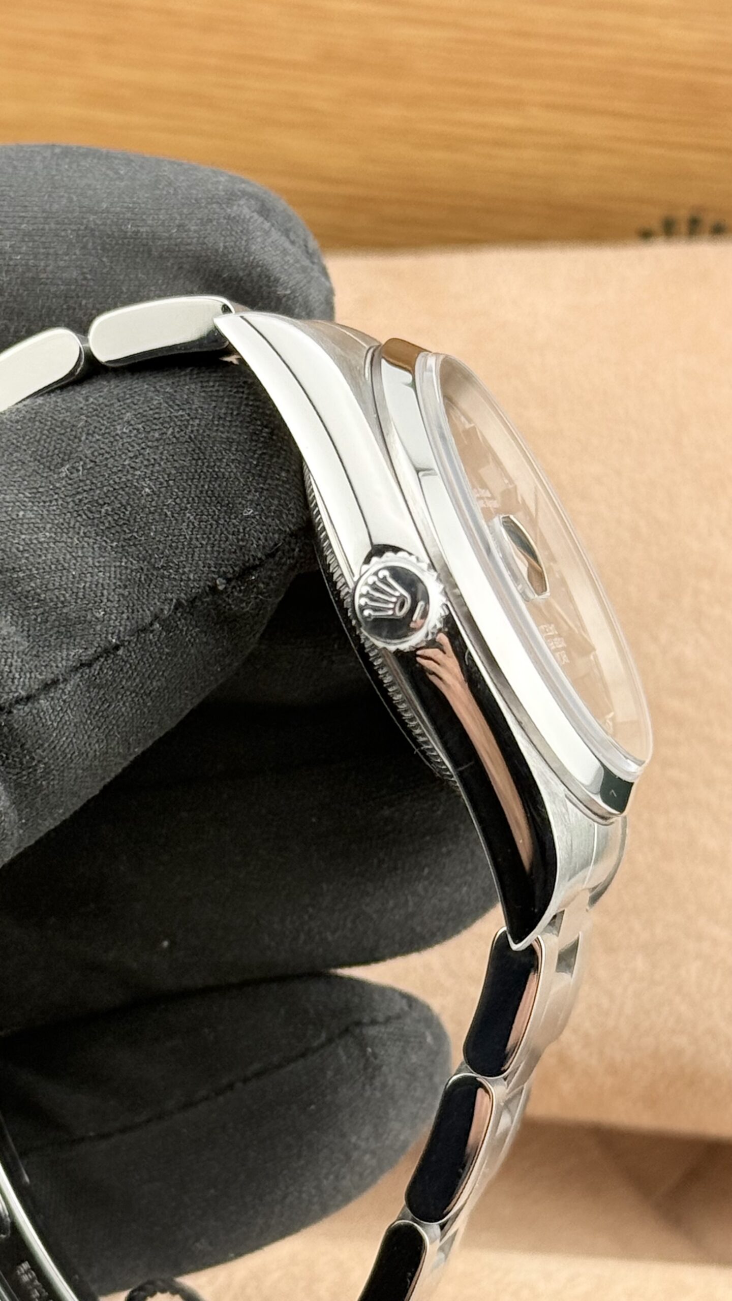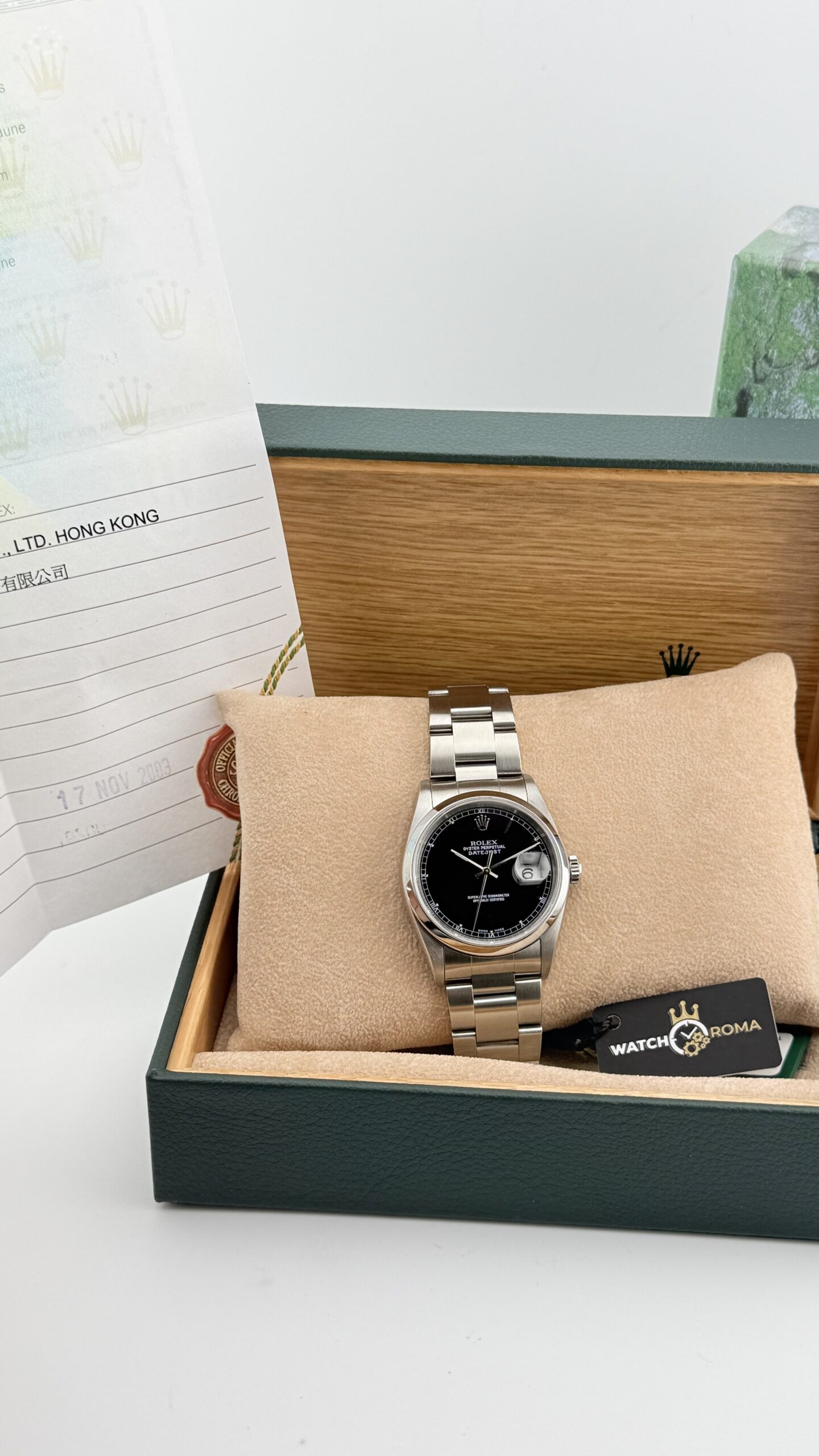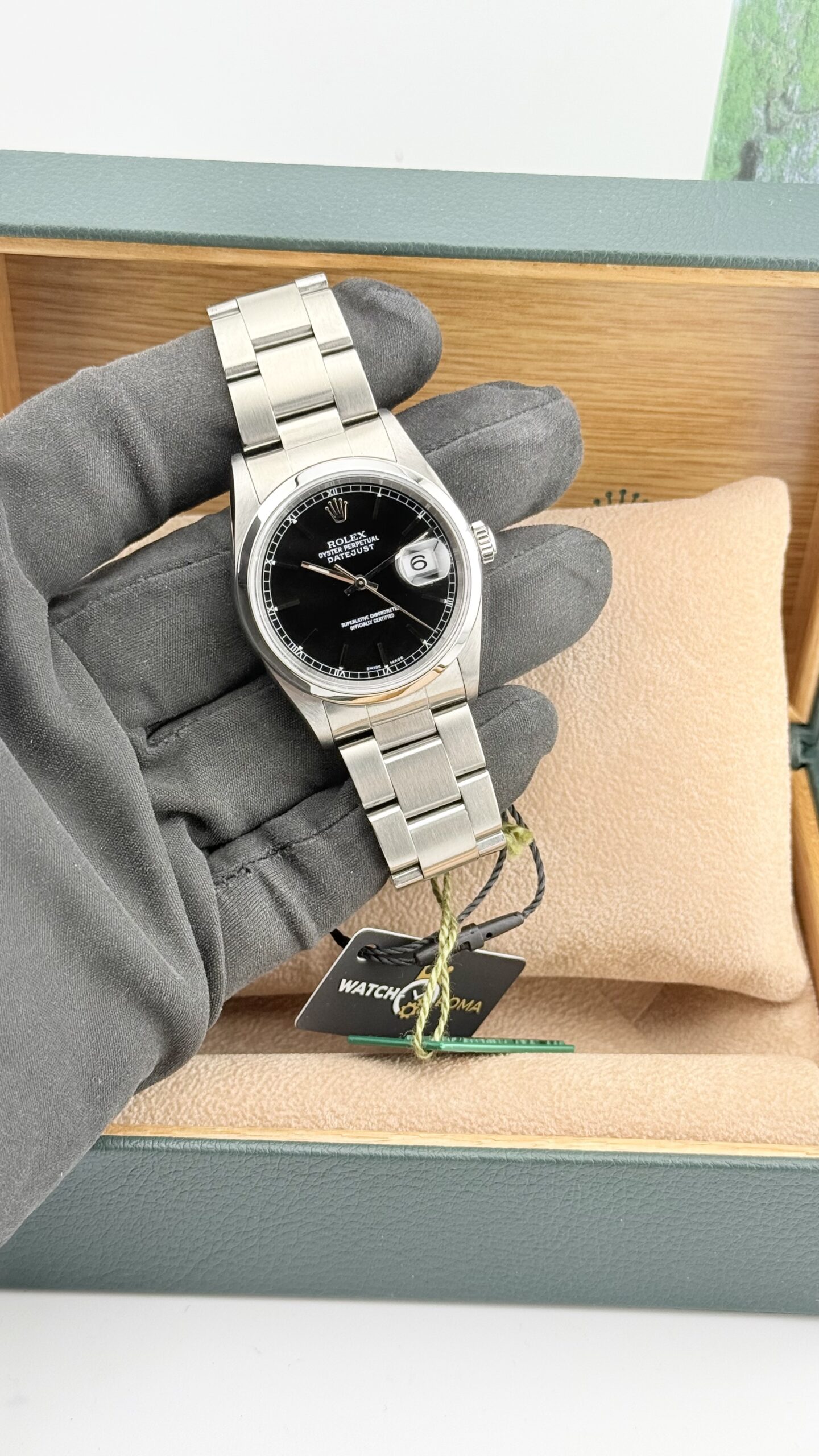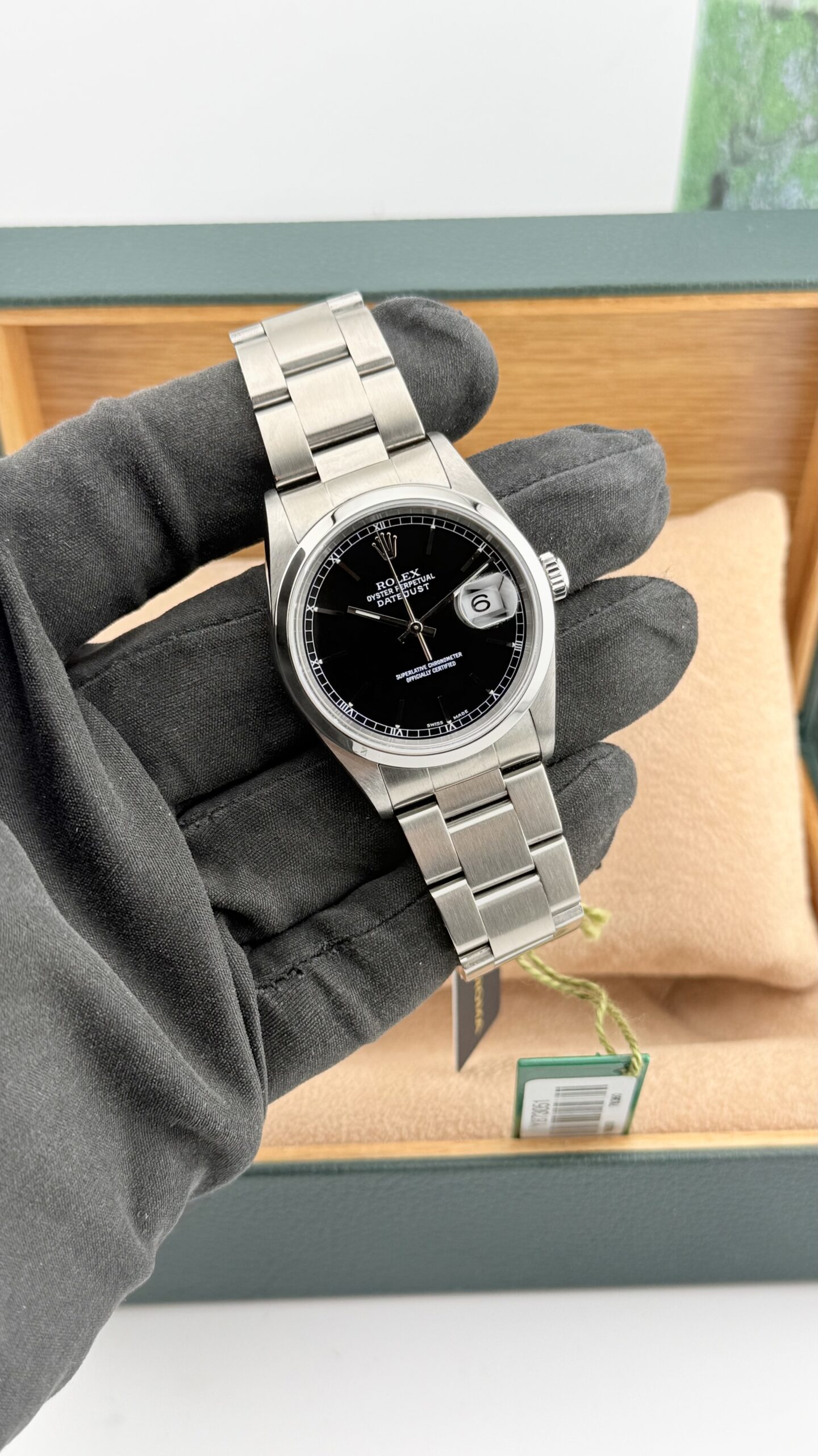 Il quadrante è proposto in nero,ed è protetto da vetro zaffiro con lente Cyclops a ore 3 per una data sempre leggibile. All’interno batte il calibro automatico Rolex 3135, noto per affidabilità, precisione e facilità di manutenzione.il 16200 è un “daily watch” raffinato: sobrio, confortevole al polso e con la versatilità che ha reso il Datejust un’icona senza tempo.