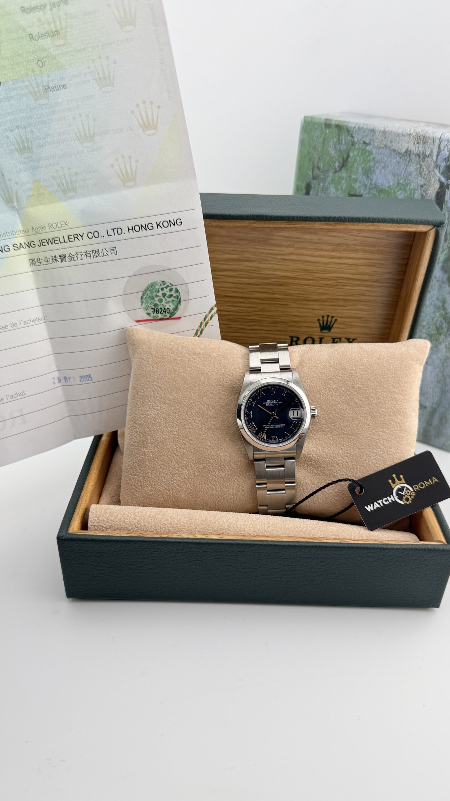 Il Rolex 78240 è un “midsize” da 31 mm della famiglia Oyster Perpetual Date: una misura estremamente versatile (unisex) che mantiene l’iconico datario con lente Cyclops, il look pulito della lunetta liscia in acciaio e tutta l’affidabilità della cassa Oyster. Perfetto come orologio quotidiano elegante ma discreto.