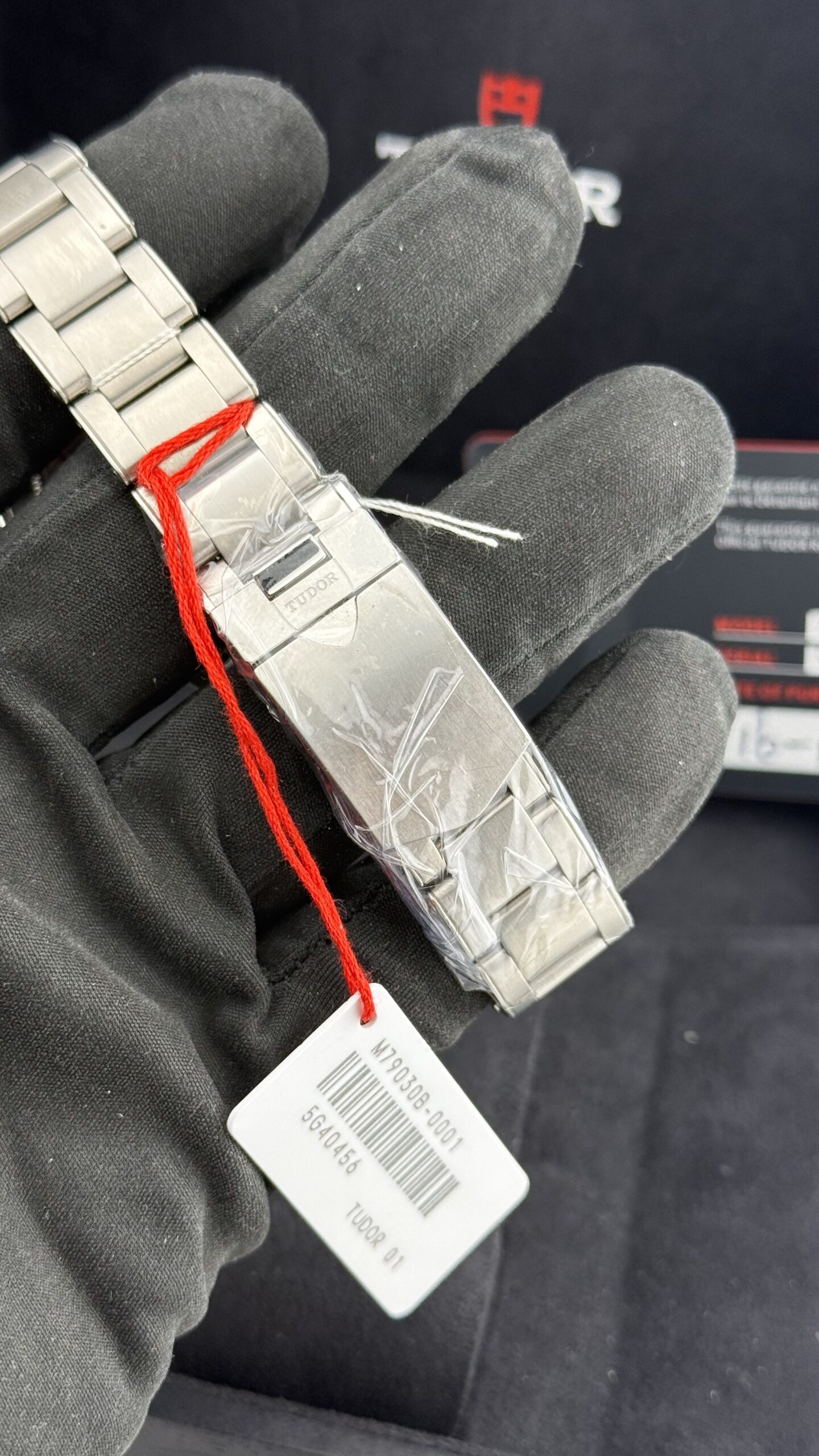 • Bracciale: acciaio rivettato satinato con chiusura pieghevole Tudor